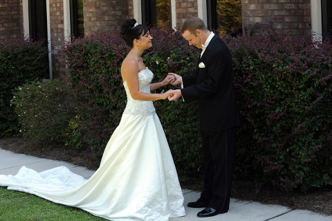 Before I post Tiffany and Chris’s wedding. I want to post their “first look”. When I first meet with my brides and grooms I discuss whether or not they want to see each other before the wedding for a “first look”. This is where they can see each other for the very first time in a very private special moment. The look on the grooms faces is priceless as they soak in the moment. Not only can they see each other but they can touch, kiss, hug and hold each other with the only other eyes on them is through my long lens a distance away. No friends, no wedding party, no one else but the couple enjoying each other before taking a little walk. By doing a first look we were able to then take wedding party formals and other group pictures before the wedding and they had more time to relax after the wedding and before the reception. Here we were able to do two first looks as we also set-up a special moment between father and daughter. Something to think about especially if your schedule for the day is tight or if you are running out of light after the ceremony.
