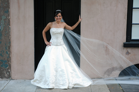 I have been waiting to finally post these wonderful bridals! Tiffany wants to do a “first look” with her husband to be ( now husband) Chris. So I have been sitting on these until they get married. They did get married last week, so here are Tiffany’s fun and energetic bridal portraits. We had a blast on a wonderful afternoon in downtown Charleston a few weeks ago just roaming the streets and picking our locations as we went. What a beautiful bride and one of the longest dresses and veils ever.